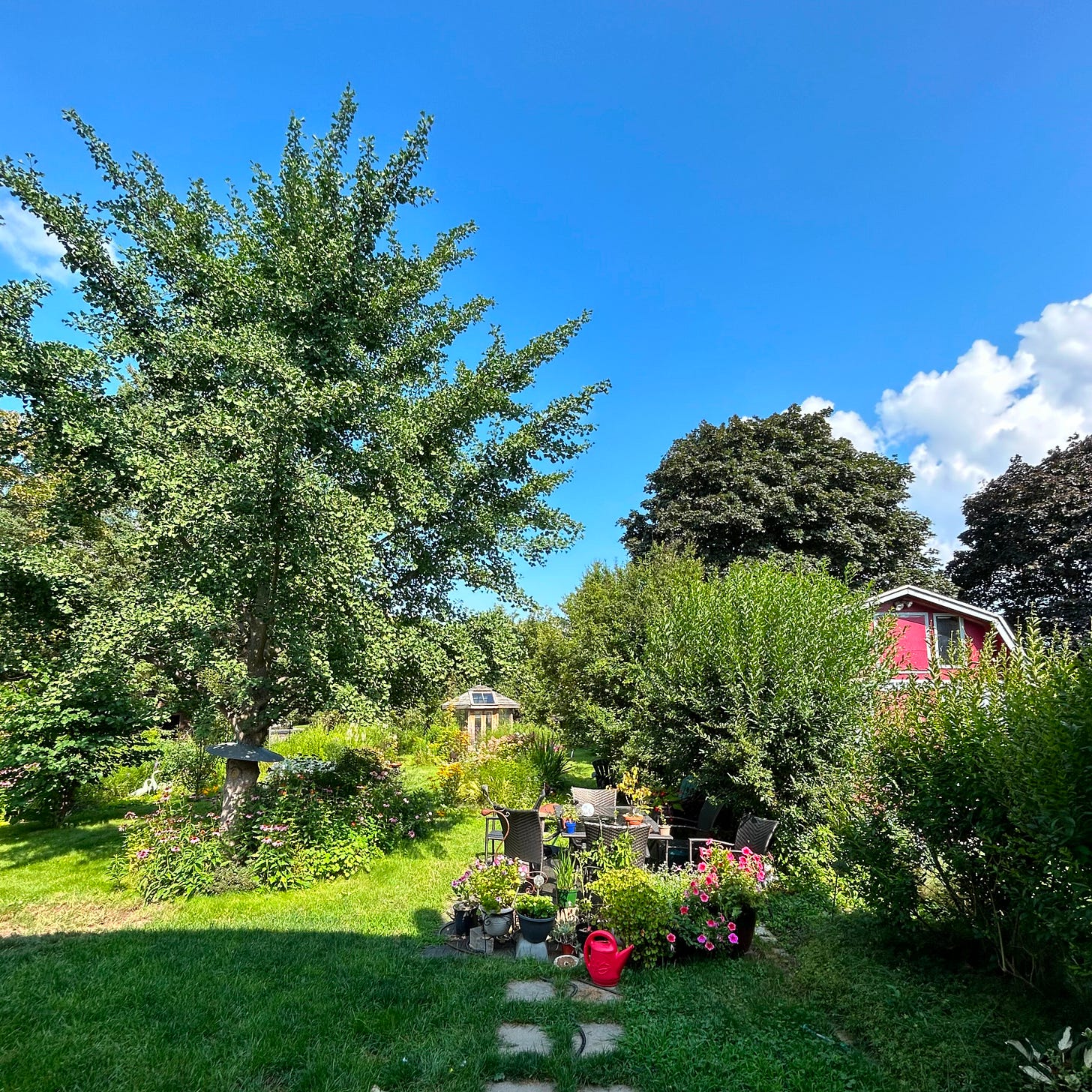 Trees, flowers, and shrubs — vibrant and full around us.